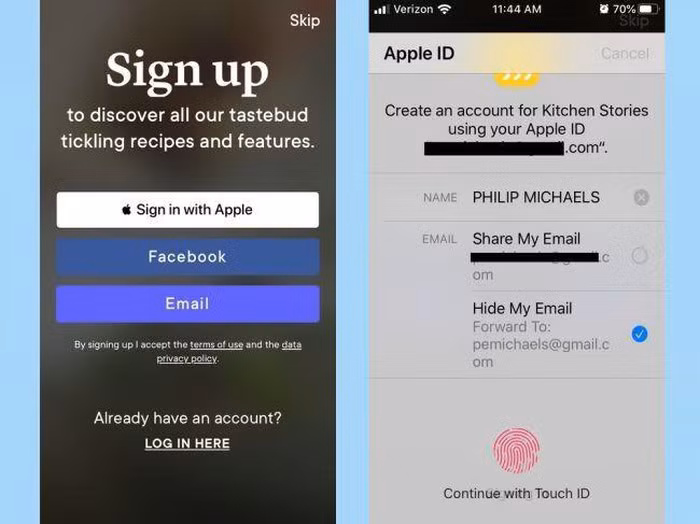 Ngoài tài khoản Facebook và Google, người dùng iOS 13 có thể đăng nhập vào các ứng dụng bằng tài khoản Apple.