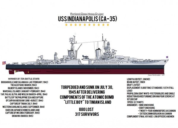 Theo hồ sơ của Hải quân Mỹ, trong chiến dịch Thái Bình Dương thời kỳ Thế chiến II, chiến hạm Indiana Bolis của Mỹ bị tàu ngầm của Nhật đánh chìm. Khi đó Hải quân Mỹ đã nhận được tín hiệu cấp cứu của 25 binh lính và sĩ quan rời khỏi chiến hạm bằng thuyền cứu hộ. Nhưng sau nhiều lần tìm kiếm, vẫn không thể tìm thấy 25 quân nhân kia. Cuối cùng, quân đội Mỹ đành phải tuyên bố họ đã mất tích.
