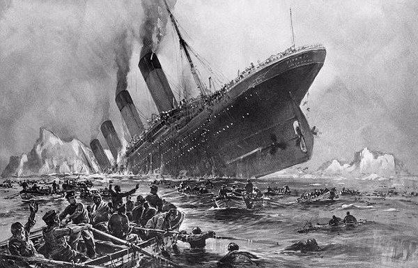 Cảnh tượng tàu Titanic đang chìm đắm do va phải băng ngày 14/4/1912 (Ảnh: titanic.wz.cz).