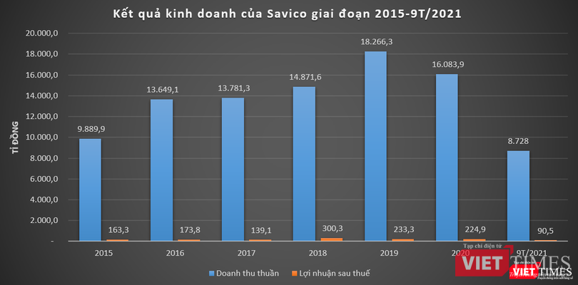 Lũy kế 9 tháng đầu năm 2021, Savico ghi nhận doanh thu thuần đạt 8.728 tỉ đồng, giảm 14% so với cùng kỳ năm trước. Lợi nhuận sau thuế lũy kế đạt 90,5 tỉ đồng, tương đương cùng kỳ năm 2020.
