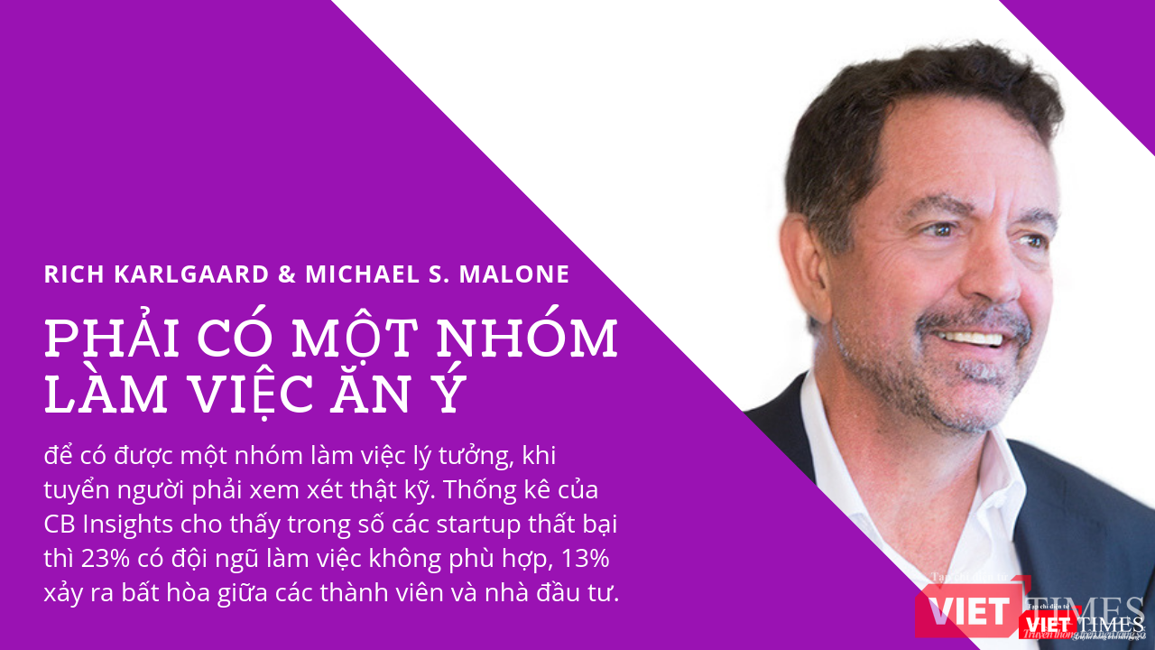Một số startup vào thời điểm khởi nghiệp đã có một đội ngũ những người rất giỏi chuyên môn, nhưng dần dần sự khác biệt về quan điểm cũng như tính cách, lối sống đã làm cho startup tan rã. Để khởi nghiệp thành công, bạn phải có một đội ngũ làm việc ăn ý, phối hợp tốt với nhau. Rich Karlgaard và Michael S. Malone, đồng tác giả cuốn sách Team Genius đã nói rằng để có được một nhóm làm việc lý tưởng, khi tuyển người phải xem xét thật kỹ. Đúng như vậy, thống kê của CB Insights cho thấy trong số các startup thất bại thì 23% có đội ngũ làm việc không phù hợp, 13% xảy ra bất hòa giữa các thành viên và nhà đầu tư.