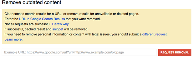 Giả sử có một trang web có thông tin về bạn trên đó bạn muốn loại bỏ chúng. Trang vẫn hiển thị thông tin của bạn trong kết quả tìm kiếm - mặc dù tên của bạn không phải lúc nào cũng xuất hiện khi bạn nhấp vào liên kết. Điều này có nghĩa là phiên bản cũ của trang được lưu trữ trên các máy chủ của Google.