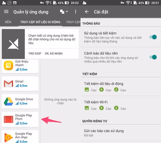 Bên cạnh đó, bạn cũng nên cài đặt thêm ứng dụng Opera Max cho smartphone tại địa chỉ https://goo.gl/ENfAks, sau đó, nhấp vào menu ở góc trên bên trái và chọn Quản lý ứng dụng. Tại đây, bạn có thể ngăn chặn/cho phép một ứng dụng bất kỳ truy cập Wi-Fi, 3G/4G hoặc chạy nền.