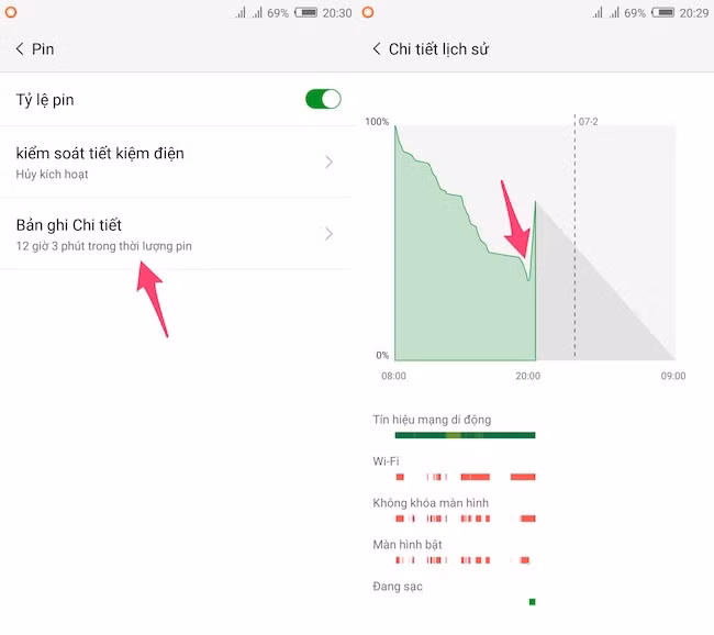 Đầu tiên, bạn hãy kiểm tra tình trạng và thời gian sử dụng pin trên máy bằng cách vào Settings (cài đặt) > Battery (pin) > Detail recording (bản ghi chi tiết). Lưu ý, vị trí và tên gọi các tùy chọn có thể thay đổi tùy vào thiết bị bạn đang sử dụng.