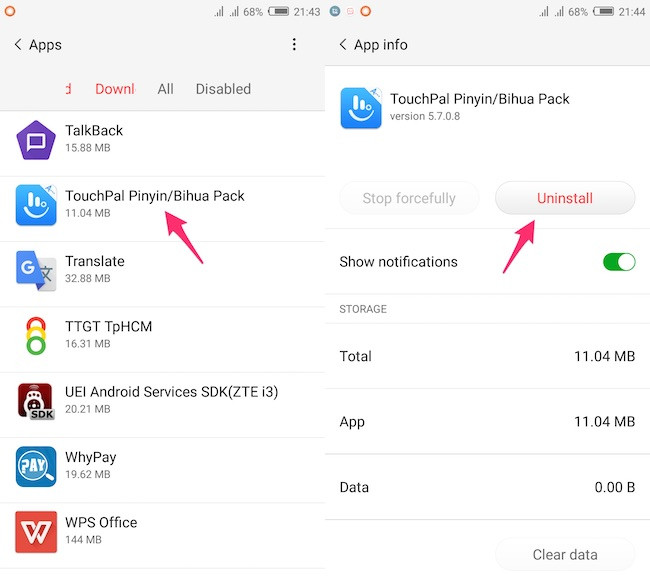 - Truy cập vào phần Settings (cài đặt) > Apps (ứng dụng) và gỡ bỏ các phần mềm lạ, hãy xác minh thật kĩ và cẩn trọng khi thực hiện việc này.