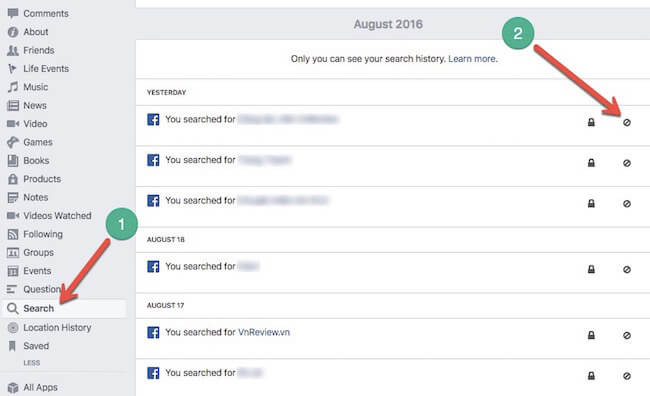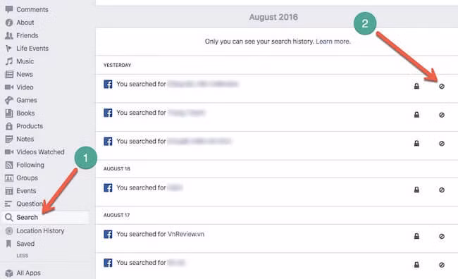 1. Xóa lịch sử tìm kiếm trên Facebook