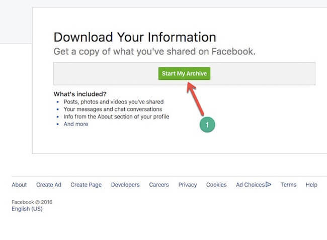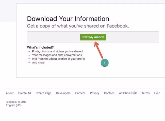 Đầu tiên, bạn hãy truy cập vào địa chỉ https://www.facebook.com/settings, nhấp vào tùy chọn Download a copy > Start My Archive và làm theo các bước hướng dẫn. Khi hoàn tất, người dùng có thể dễ dàng xem lại nội thông qua các file html.