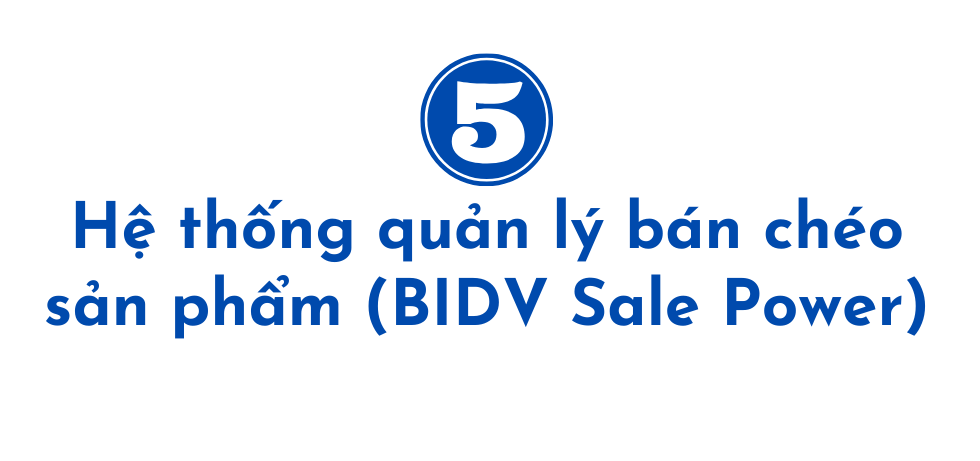 Hệ thống quản lý bán chéo sản phẩm (BIDV Sale Power) là ứng dụng phân tích dữ liệu thông qua chỉ số Customer Lifetime Value tự động đề xuất bán sản phẩm cho khách hàng theo mục tiêu tối ưu giá trị đem lại cho cả khách hàng và ngân hàng. Với một số khách hàng, BIDV Sale Power đã đề xuất được những sản phẩm khách hàng có nhu cầu nhưng chưa nghĩ đến. Ứng dụng còn có rất nhiều tiện ích nhằm rút ngắn thời gian cho giao dịch viên với khách hàng như: in mẫu biểu tự động, xem thông tin 360 độ khách hàng, kiểm soát tình hình bán hàng…