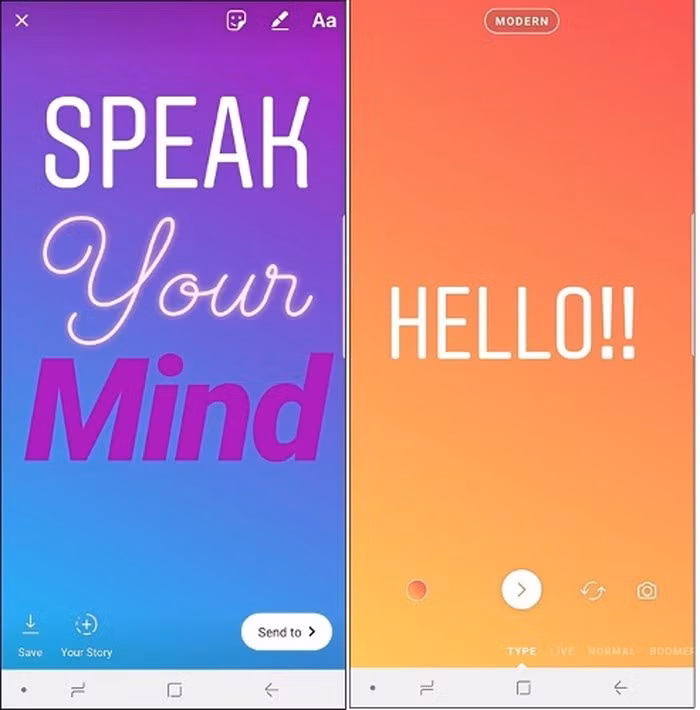 Đối với những người muốn kể một câu chuyện không phải là hình ảnh, chế độ Type sẽ là lựa chọn tốt nhất. Với một loạt các phong cách văn bản sáng tạo, mới mẻ, hứa hẹn mang đến cho người dùng những trải nghiệm viết lách thú vị hơn.