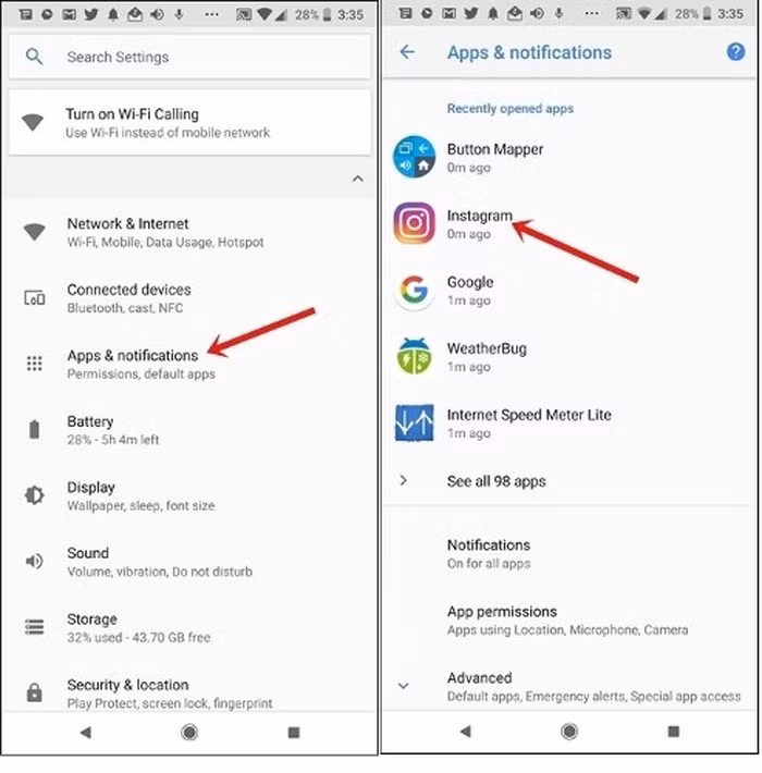 Truy cập menu Settings trên điện thoại Android, điều hướng đến Apps > Application Manager và bấm chọn tên ứng dụng Tap Instagram. Trên màn hình App Info, nhấn Force Stop và như vậy bạn đã tắt hoàn toàn tính năng Active Status của Instagram thành công.