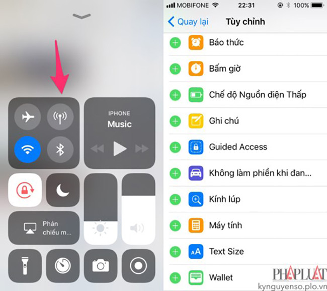 - Control Center (trung tâm thông báo) – Các nút chức năng và biểu tượng trên thanh thông báo đã được hoàn thiện hơn so với phiên bản đầu tiên. Nút Bluetooth sẽ có chức năng ngắt kết nối với các thiết bị ghép nối chứ không phải tắt hoàn toàn Bluetooth.