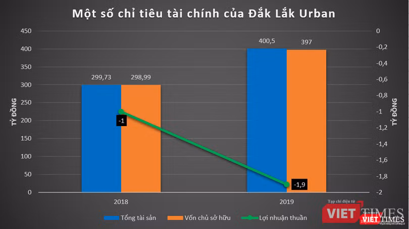 Tính đến cuối năm 2019, tổng tài sản của Đắk Lắk Urban đạt 400,5 tỷ đồng, tăng 33,6% so với thời điểm đầu năm; vốn chủ sở hữu tăng gần 100 tỷ đồng lên mức 397 tỷ đồng.