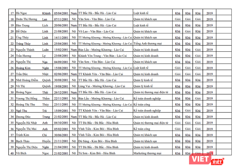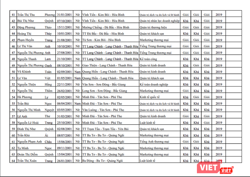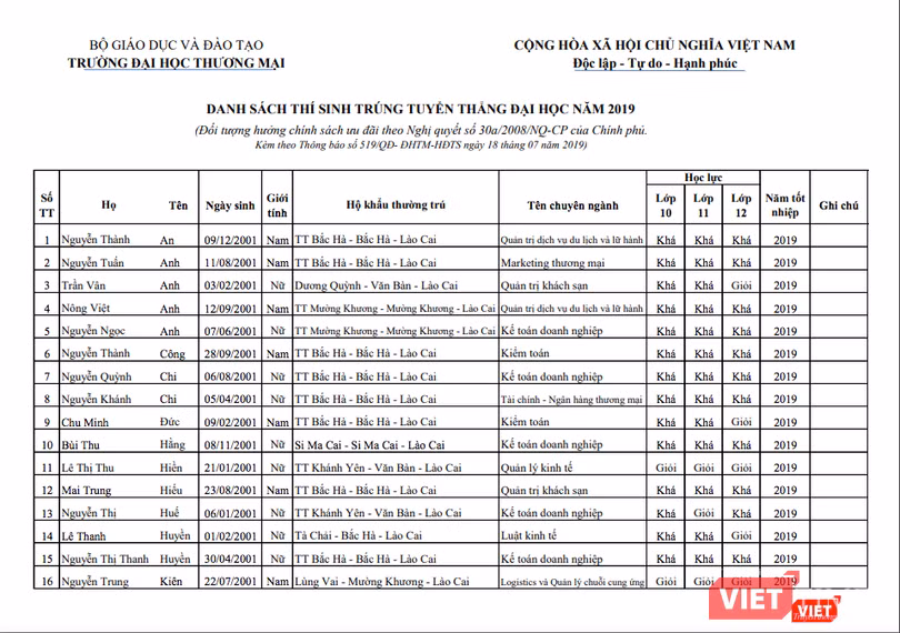 Dưới đây là danh sách thí sinh trúng tuyển thẳng vào Trường ĐH Thương Mại năm 2019.