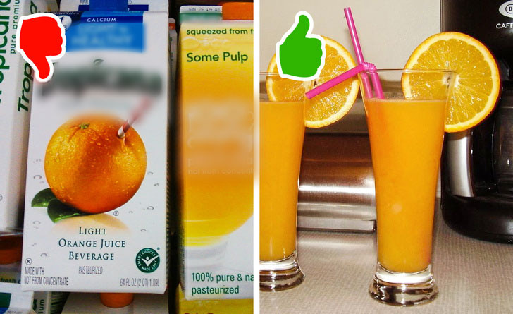 Khi muốn giảm cân, mọi người thường kiêng nước ngọt và các loại đồ uống có đường. Tuy nhiên, họ quên mất nước trái cây chế biến sẵn. Các loại nước ép đóng gói đều có đường, sẽ làm bạn tăng cân thay vì giảm cân.