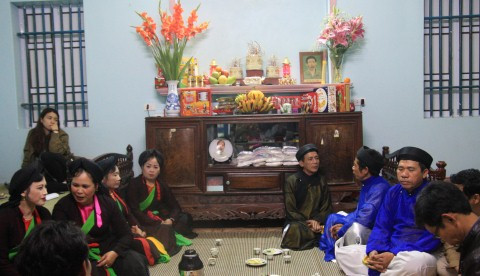 Đêm hát canh tại nhà ông Nguyễn Hữu Bể vẫn được coi là nơi gìn giữ trọn vẹn giá trị hát giao duyên quan họ trong ngày hội Lim.Ảnh: Phạm Mỹ.