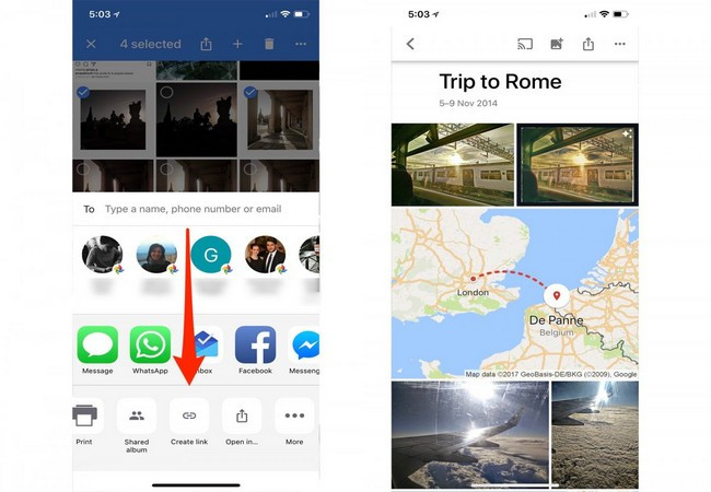 Bạn có thể dễ dàng chia sẻ những album này với bạn bè bằng một đường link đơn giản, có thể truy cập từ trong ứng dụng hoặc trên web.