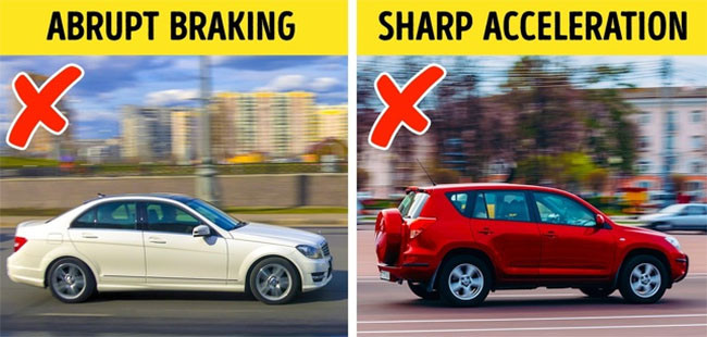 6. Tránh phanh đột ngột và tăng tốc nhanh.