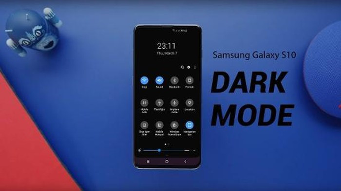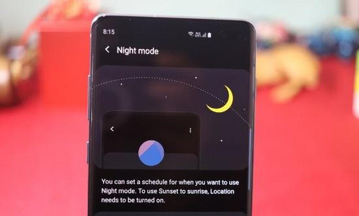 Chế độ này sẽ giảm ánh sáng xanh phát ra từ màn hình điện thoại, giúp giảm mỏi mắt, giảm mệt mỏi và giúp người dùng ngủ dễ hơn khi sử dụng điện thoại vào ban đêm. Nhưng Galaxy S10 không chỉ có chế độ tối (Dark Mode) mà còn cả theme tối tích hợp.