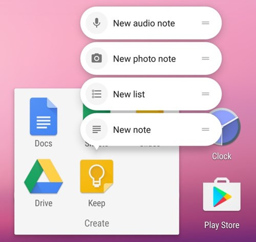 Tương tự các ứng dụng trên, Keep cũng hỗ trợ 2 app shortcut rất hữu ích là New list và New Note, giúp người dùng mở nhanh một trang ghi chú mới trong những trường hợp cấp bách.