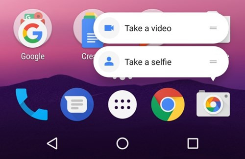 Nếu chọn Take a selfie, ứng dụng Camera sẽ tự chuyển sang chế độ hiển thị bằng camera trước, nhờ đó, người dụng sẽ nhanh chóng có được những bức ảnh “tự sướng” thay vì phải chuyển đổi camera như trước kia.