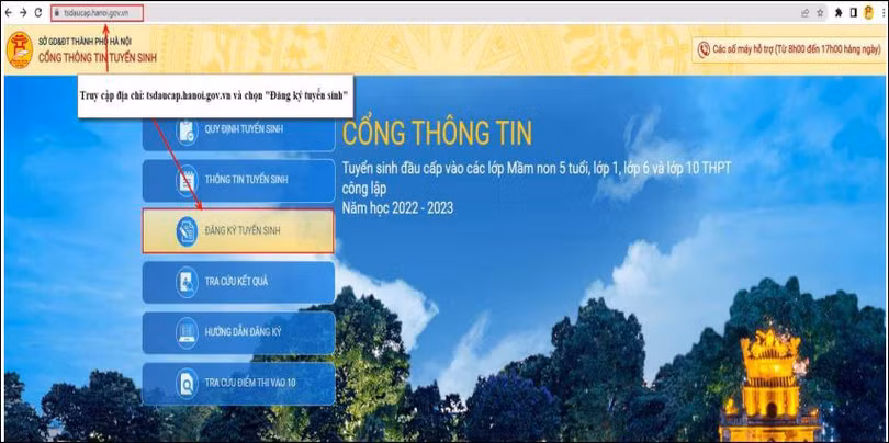 Bước 2: Truy cập vào cổng thông tin tuyển sinh tại địa chỉ tsdaucap.hanoi.gov.vn