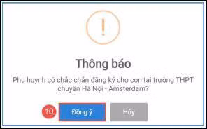 Bước 8 : Xác nhận “Đồng ý” để hoàn thành thao tác đăng ký nguyện vọng.