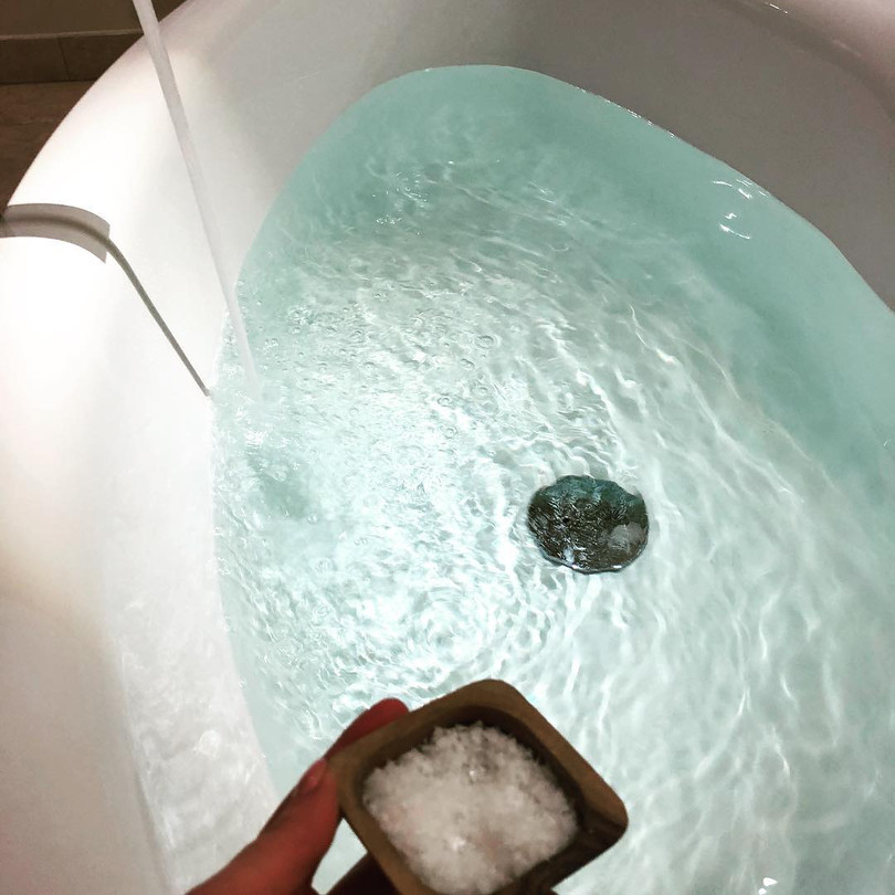 Một bồn tắm với muối Epsom sẽ giúp bạn tăng lượng magiê trong cơ thể và giảm kích thích tố căng thẳng cùng một lúc. Chỉ cần đổ đầy bồn tắm bằng nước ấm và cho 1-3 ly muối Epsom vào. Ngoài muối Epsom, bạn cũng có thể thêm 1/2 chén baking soda và một vài giọt tinh dầu. Ngâm trong bồn khoảng 12 phút, sau đó rửa sạch bằng nước sạch.