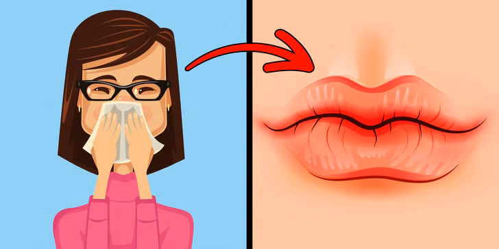 Song, môi khô, nứt nẻ cũng có thể báo hiệu rằng cơ thể của bạn đang bị dị ứng. Nếu môi khô, nứt nẻ xuất hiện kèm tình trạng ngứa trên cơ thể, bạn phải uống thuốc chống dị ứng hoặc đi khám bệnh có biện pháp can thiệp kịp thời.