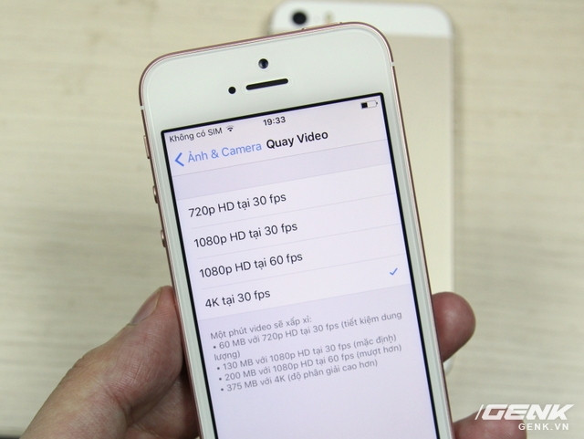 Ngoài ra, một cách khác có thể phân biệt giữa 2 model iPhone này chính là tùy chọn quay phim 4K trên iPhone SE. Cách kiểm tra như sau, chúng ta cần truy cập vào phần Settings > Photos & Camera > Record video > 4K at 30 fps. Nếu có tùy chọn này, đây đúng là iPhone SE.
