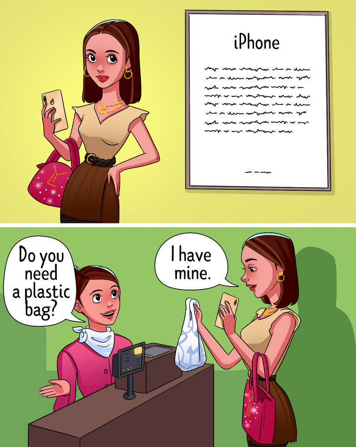 Xã hội ngày nay đang tích cực thúc đẩy con người tìm niềm vui chủ yếu từ mua sắm: mua đồ dùng mới, nước hoa hợp thời trang, hoặc điện thoại đời mới. Thế nhưng, một khi bạn mua chiếc iPhone X, bạn sẽ phải ăn mì ăn liền trong 6 tháng, và rằng một chiếc xe đắt tiền cũng sẽ chỉ đặt trong garage xe vì chủ xe chưa có đủ tiền thanh toán cho dịch vụ.