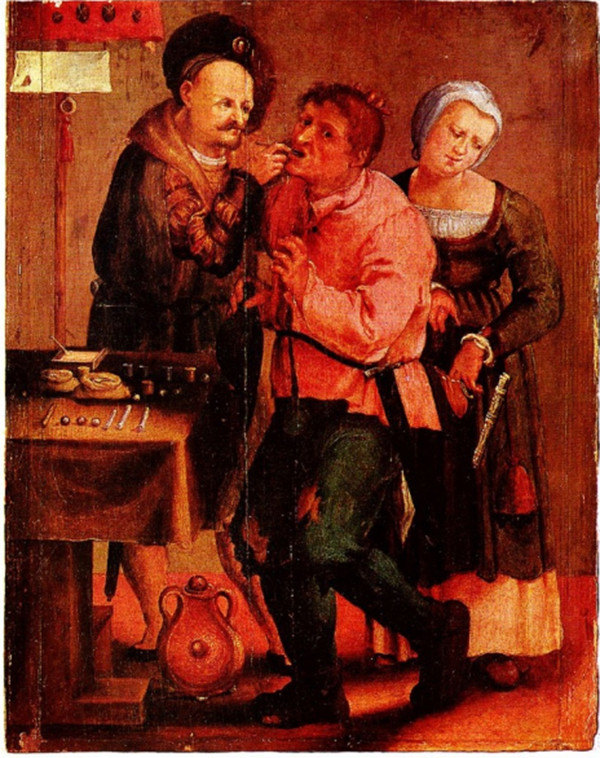 Một số phương pháp cổ đại khá lạ thường. Avicenna khuyến khích bệnh nhân hút một hỗn hợp đốt cháy chất béo dê, henbane và hành tây như một phương pháp điều trị nha khoa. Pliny the Elder tin rằng cách duy nhất để thoát khỏi đau răng là bắt một con cóc vào lúc nửa đêm, nhổ nước bọt vào trong miệng nó và nói những từ đặc biệt như "chữa".