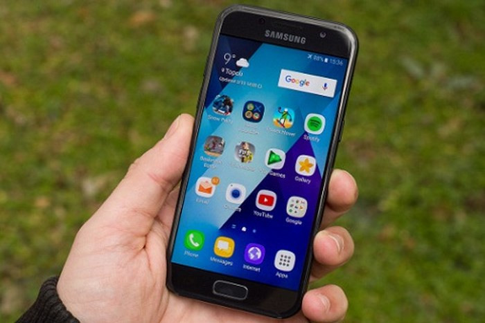 Samsung Galaxy A3 (2017). Samsung Galaxy A3 là một chiếc điện thoại đơn giản, đẹp và có hiệu năng ổn định trong tầm giá. Thiết kế kính và kim loại, đồng thời mang khả năng chống nước đã khiến nó trở thành một thiết bị cao cấp nhưng vẫn có mức giá bình dân. Điểm trừ duy nhất đó chính là độ phân giải màn hình thấp và bộ nhớ trong chỉ 16GB. Máy có thiết kế đẹp mắt, kích cỡ nhỏ gọn, có khả năng chống nước, giao diện phong phú về tính năng cùng thời lượng pin tuyệt vời. Giá khoảng 5,6 triệu đồng.