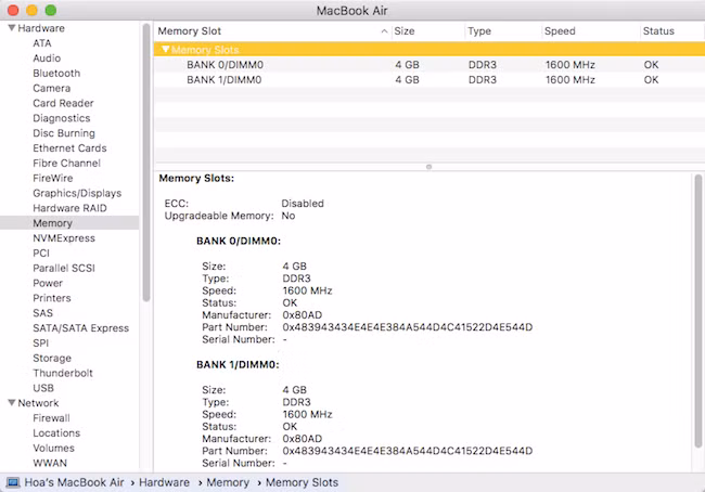 Nếu đang sử dụng MacBook, bạn bấm vào biểu tượng Apple ở góc trên bên trái, chọn About this Mac > System Report > Memory > Slot. Nhiều người thường nghĩ rằng RAM càng cao thì máy tính sẽ chạy càng nhanh, tuy nhiên, việc này hoàn toàn sai lầm bởi nó sẽ gây ra tình trạng nghẽn cổ chai.