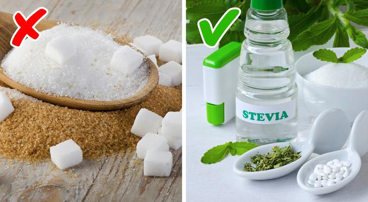 Lời khuyên của các chuyên gia là bạn hãy thay thế đường kính bằng những chất lành mạnh hơn như vani hoặc stevia trong tách cà phê. Nếu bạn vẫn cần thêm ngọt, hãy giảm lượng đường và tăng cường các chất tạo ngọt lành mạnh khác.