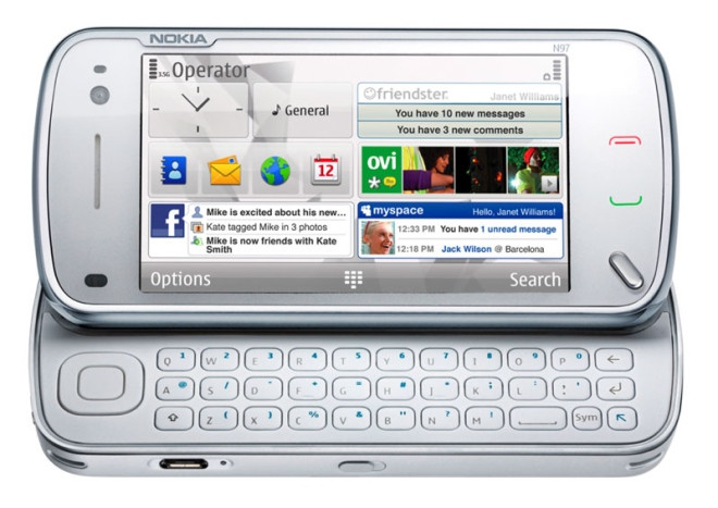 N97 là chiếc N-series đầu tiên có màn hình cảm ứng, máy sở hữu bàn phím QWERTY trượt lên độc đáo, camera 5 megapxiel, bộ nhớ 32 GB.