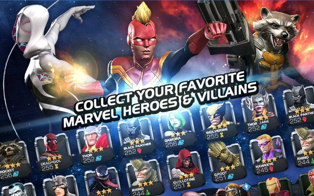 Về cơ bản, người chơi sẽ bắt đầu với hai siêu anh hùng, và có thể thu thập lên tới tổng cộng 25 nhân vật siêu anh hùng khác nữa trong Marvel Contest of Champions. Game có lối chiến đấu theo phong cách cổ điển và khá giống với The King of Fighters. Nhân vật trong game được chọn lọc và người chơi sẽ được gặp lại Captain America, Talisman, Darkstar, Captain Britain, Wolverine... đều là những siêu anh hùng nổi tiếng và có số lượng người hâm mộ đông đảo trên khắp thế giới. Mỗi người đều có những đặc điểm, khả năng và cách di chuyển khác biệt.