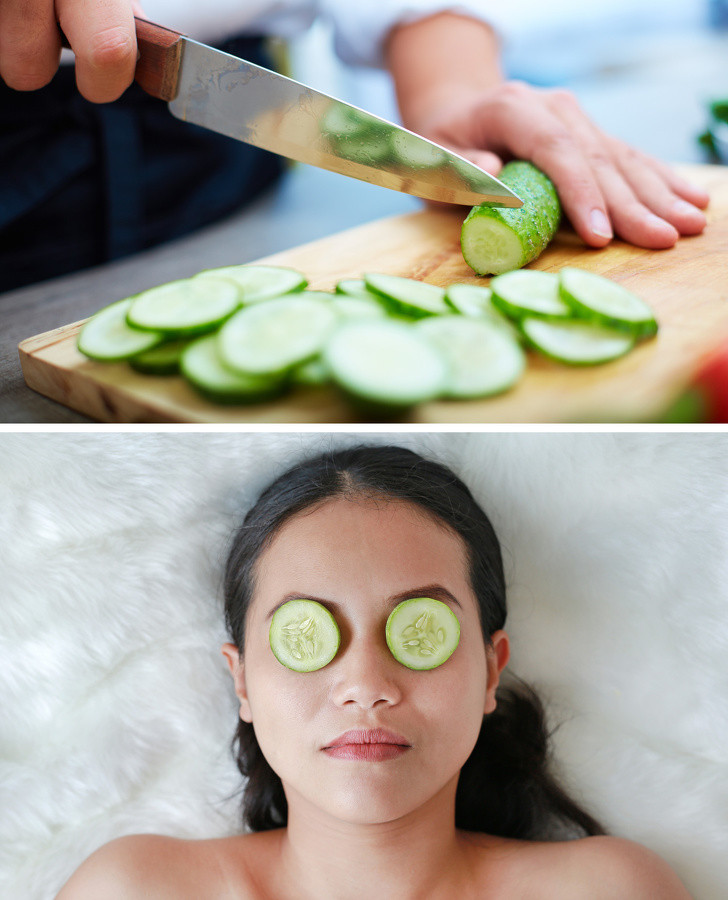 Các nghiên cứu đã chỉ ra rằng dưa chuột có thể làm giảm sưng quanh mắt, dưỡng ẩm, và làm giẳm tắc nghẽn các tuyến dầu trong mắt. Dưa chuột có hàm lượng nước cao, chúng có thể dưỡng ẩm cho mắt và thẩm thấu vào da để giữ nước đồng thời giảm khô mắt.