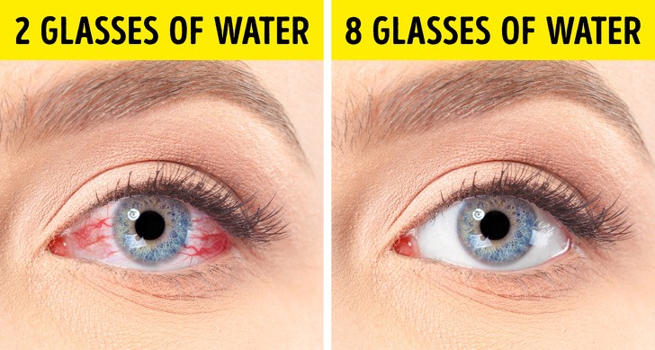 Cung cấp đầy đủ độ ẩm cho đôi mắt là chìa khóa để đôi mắt sáng và rõ ràng. Hãy chắc chắn rằng bạn uống đủ nước mỗi ngày. Điều này sẽ làm giảm bọng mắt và đỏ mắt. Hãy uống khoảng 8-10 ly nước mỗi ngày để giữ ẩm cho cơ thể và để có được đôi mắt sáng.