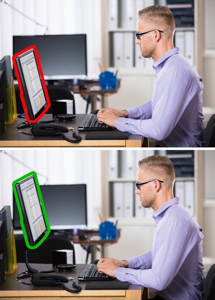 Nếu bạn thường xuyên sử dụng máy tính, hãy đảm bảo rằng màn hình máy tính được định vị chính xác để giảm thiểu mỏi mắt. Bàn làm việc hoặc màn hình máy tính cần chếch lên 15 - 20 độ so với mặt phẳng nằm ngang. Ngoài ra, bạn nên giảm độ sáng màn hình và điều chỉnh độ phân giải phù hợp. Hãy luôn nhớ rằng chớp mắt sẽ giúp mắt bạn không bị khô và hạn chế được tình trạng mỏi mắt.