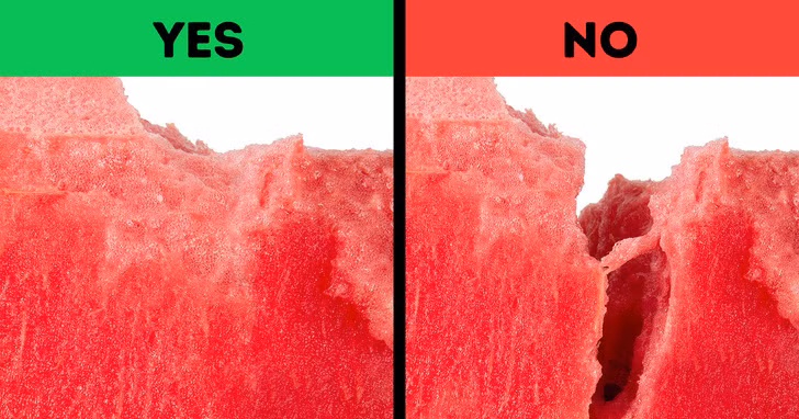 Nếu bạn bổ một quả dưa hấu và nhìn thấy các vết nứt trên bề mặt, tốt hơn là vứt nó đi. Những vết nứt này có thể do các hóa chất mà người trồng sử dụng để kích thích dưa hấu phát triển nhanh hơn. Khi ăn phải, các hóa chất này có thể gây ra các vấn đề sức khỏe nghiêm trọng bao gồm ngộ độc.