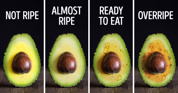 Bóc vỏ của quả bơ, nếu bóc dễ dàng và vỏ có màu xanh lá cây bên dưới thì đây bơ là tốt và đủ độ chín. Nếu có màu nâu xỉn, quả bơ đã chín quá và bạn có thể sẽ thấy những đốm đen xung quanh quả. Còn nếu bạn không thể bóc được vỏ, quả bơ này chắc chắn còn xanh, chưa ăn được.