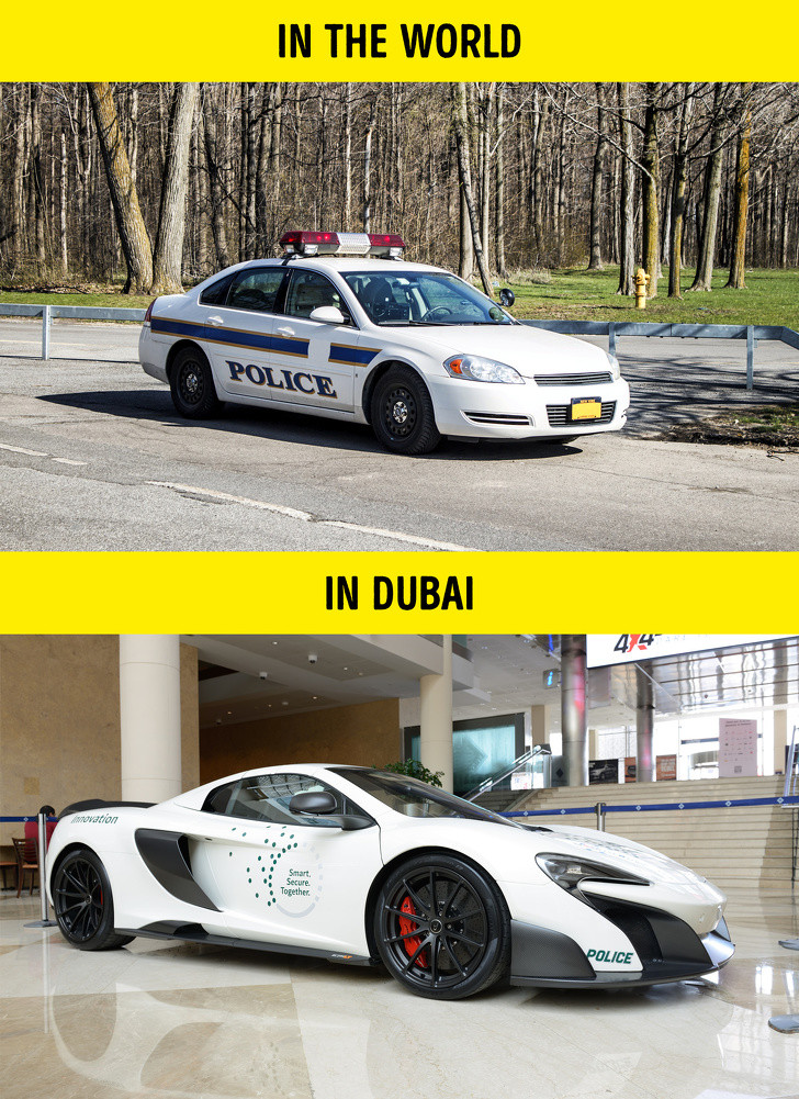 Cảnh tượng cảnh sát Dubai với những chiếc xe đắt tiền như Aston Martin, Ferrari hoặc Mercedes đã không còn là điều xa lạ. Tất nhiên, những chiếc xe như vậy được sử dụng chủ yếu cho các chương trình và triển lãm. Tuy nhiên, đôi khi cảnh sát điều khiển xe sang đi tuần tra các khu vực giàu có quyền thế.