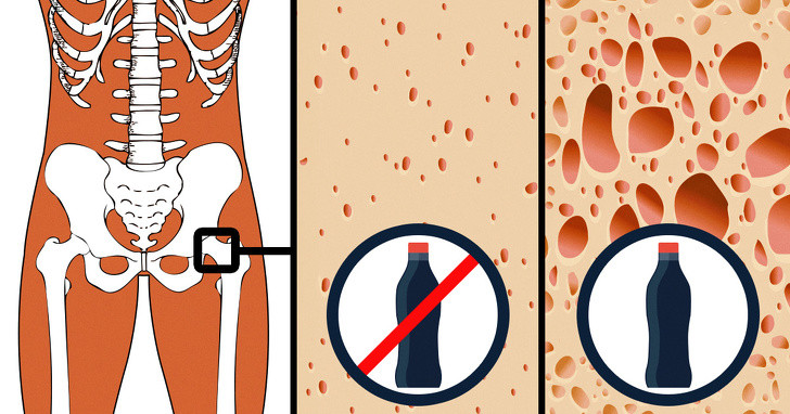 Ngoài béo phì và tổn thương gan, một lý do khác là tại sao bạn nên bỏ uống soda vì ảnh hưởng của nó đối với xương. Soda chứa cả axit photphoric và caffeine làm giảm mật độ khoáng xương và gây loãng xương.