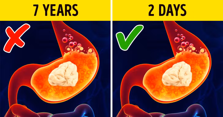 Khi còn nhỏ, hầu như ai cũng ít nhất một lần vô tình nuốt phải kẹo cao su và cũng từng mất ăn mất ngủ vì những lời đồn rằng sẽ bị dính ruột hay phải mất đến 7 năm thì mới có thể tiêu hóa hết kẹo cao su. Mặc dù cơ thể chúng ta không thể tiêu hóa được kẹo cao su nhưng bã kẹo cũng sẽ không cư ngụ mãi mãi trong bụng mà cơ thể sẽ đào thải nó ra ngoài cùng các loại hạt khó tiêu khác. Và tất nhiên sẽ không mất đến 7 năm!