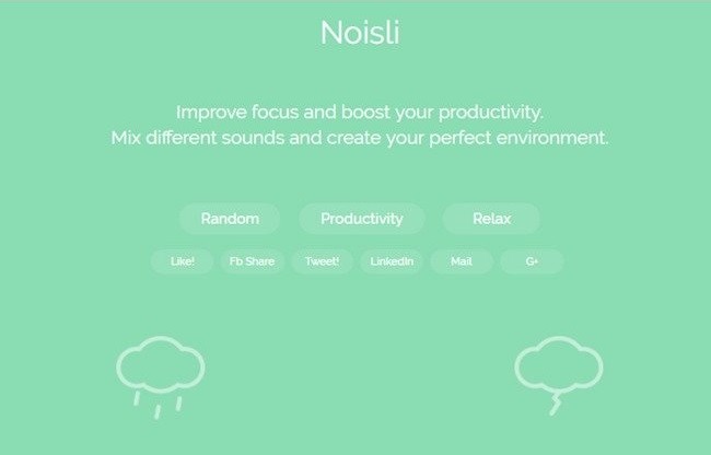 Nếu như bạn là một người có khả năng tập trung tốt hơn khi có các âm thanh như tiếng lá râm ran, tiếng gió thổi, thì không có một ứng dụng nào tuyệt vời hơn Noisli. Trang web này cung cấp cho bạn rất nhiều tiếng nền như tiếng mưa rơi, âm thanh của một quán cà phê trong một ngày bận rộn hoặc chỉ là những âm thanh âm ỉ,… để giúp bạn có thể đạt được một tâm trạng sảng khoái với mục đích cuối cùng là làm việc hiệu quả nhất.