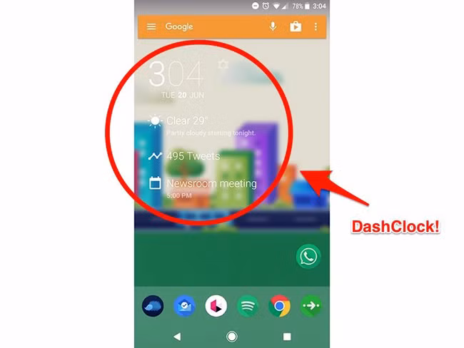 DashClock giống như một tiện ích dạng widget hơn là một ứng dụng bởi sự nhỏ gọn và tiện dụng của nó. DashClock có khả năng hiển thị các chú ý, thông báo, thời gian, thời tiết... Đặc biệt, nó có khả năng giúp bạn truy cập nhanh các ứng dụng có liên quan đến các thông tin được hiển thị chỉ qua hai lần chạm vào màn hình. Tuy nhiên, không phải ứng dụng nào cũng tương thích để hiển thị trên DashClock. Ngoài ra, người dùng có thể tùy chọn và sắp xếp các thông tin được hiển thị trên DashClock.