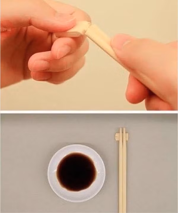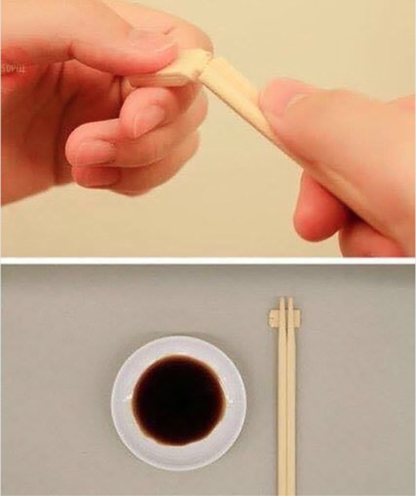 Một mảnh giấy ăn gấp lại cũng có thể biến thành vật dụng kê/gác đũa. Do đó, những mẩu gỗ nhỏ phía cuối đũa sẽ được dùng làm chiếc gác đũa.
