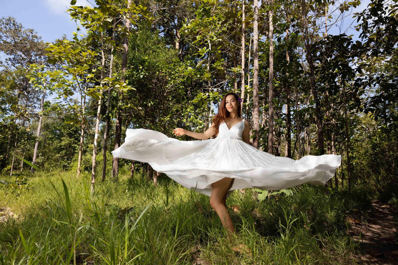 Hoàng My chia sẻ những cảm xúc rất đặc biệt của bản thân với địa điểm này: “Đôi khi tôi cảm nhận mọi thứ trở nên rất thơ và tôi thấy mình là một nàng thơ từng bước trong khu rừng, nhảy múa dưới những tia nắng và hòa bình với vạn vật. Bạn có thể cảm nhận được một năng lượng chữa lành và một sự bình yên rất lớn đến từ thiên nhiên.”