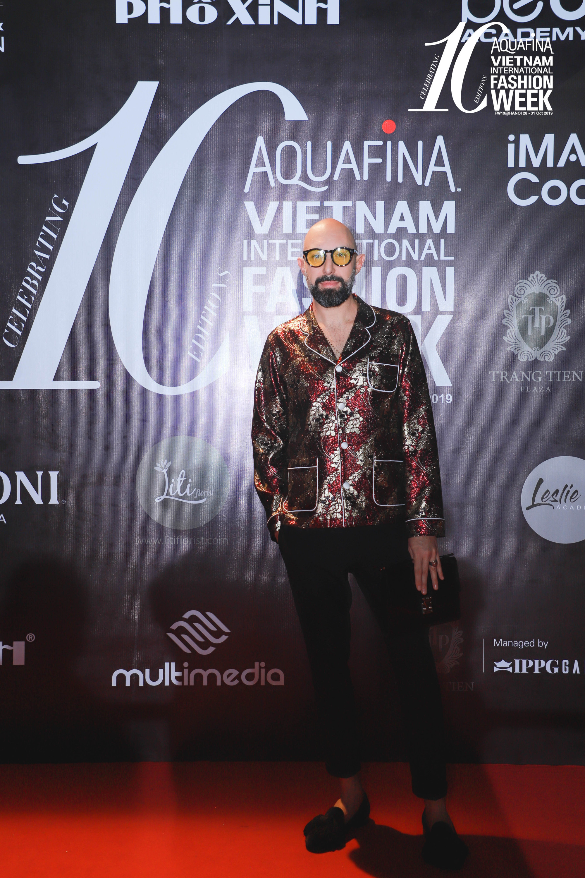 Nhà thiết kế đình đám Chung Thanh Phong cũng góp mặt tại thảm đỏ cuối của Aquafina Vietnam International Fashion Week 2019