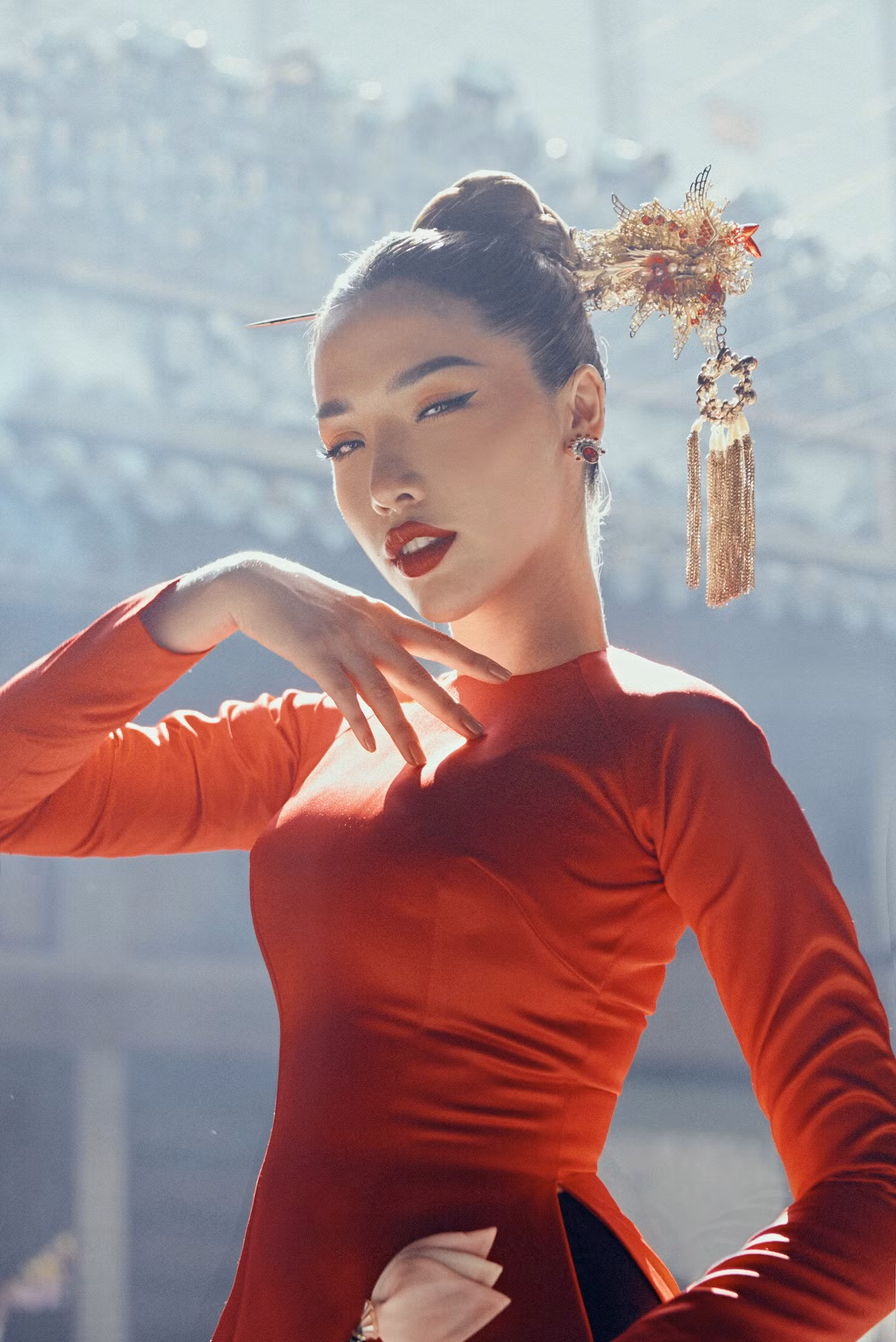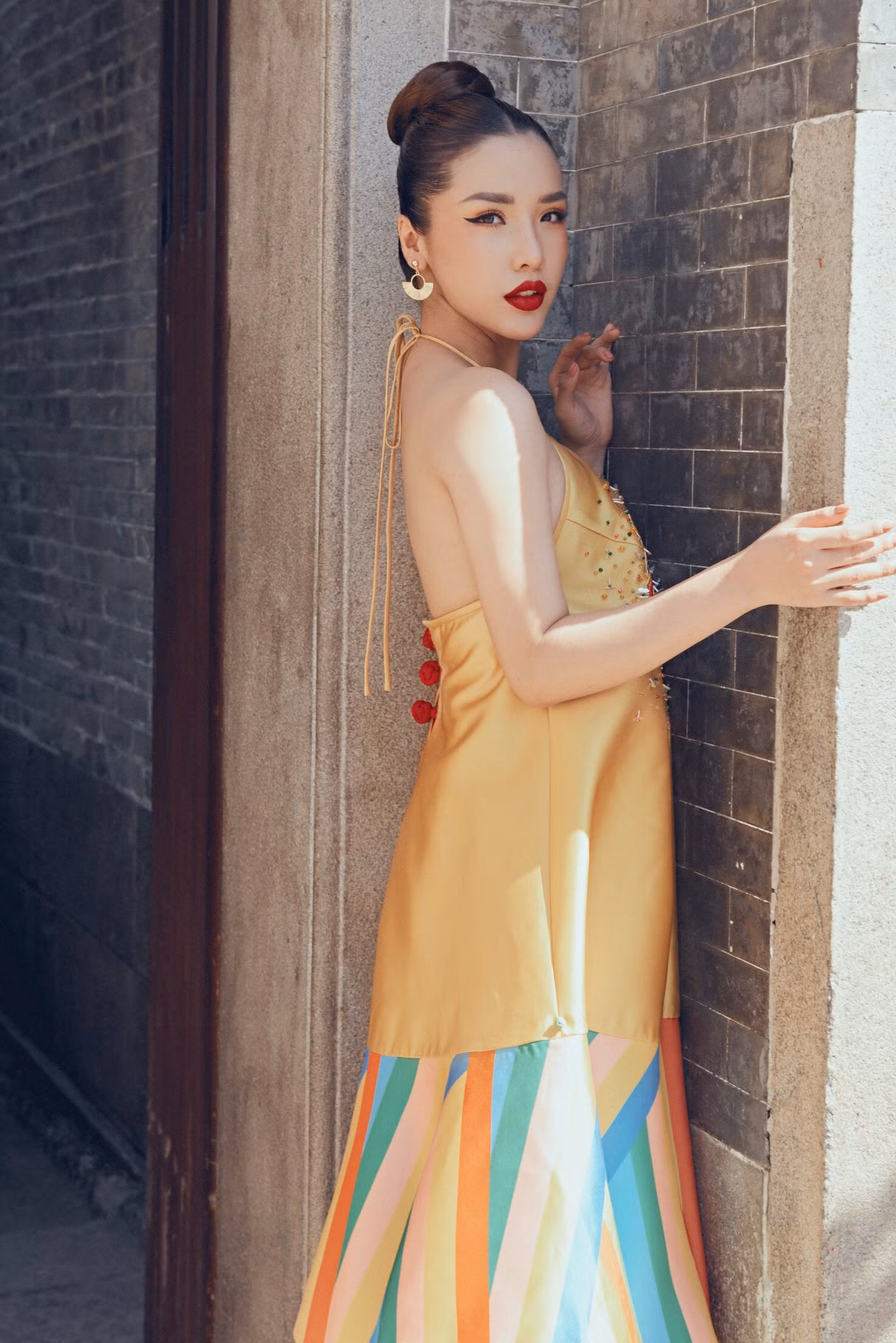Chọn cho mình những mẫu áo dài cách tân màu đỏ, vàng làm may mắn để đón chào năm mới Á hậu Biển Việt Nam Khánh Phương chinh phục mọi người bởi phong cách trẻ trung, nữ tính nhưng cũng không kém phần kiêu kỳ, cuốn hút.
